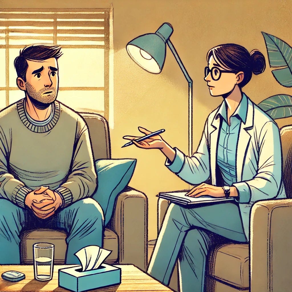 He left the therapist's office a bit lighter after pouring his heart out in there. The only thing that kept him sane. Talking it out without fear of being judged or put in his place.