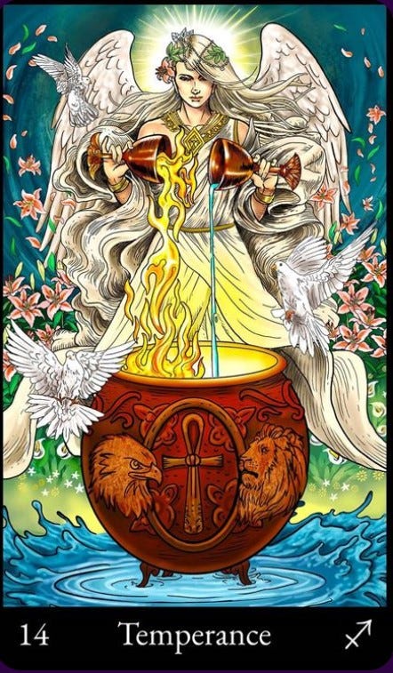 My card of the day today is Temperance, and as a word buff of course I want to mention the etymology of the word: