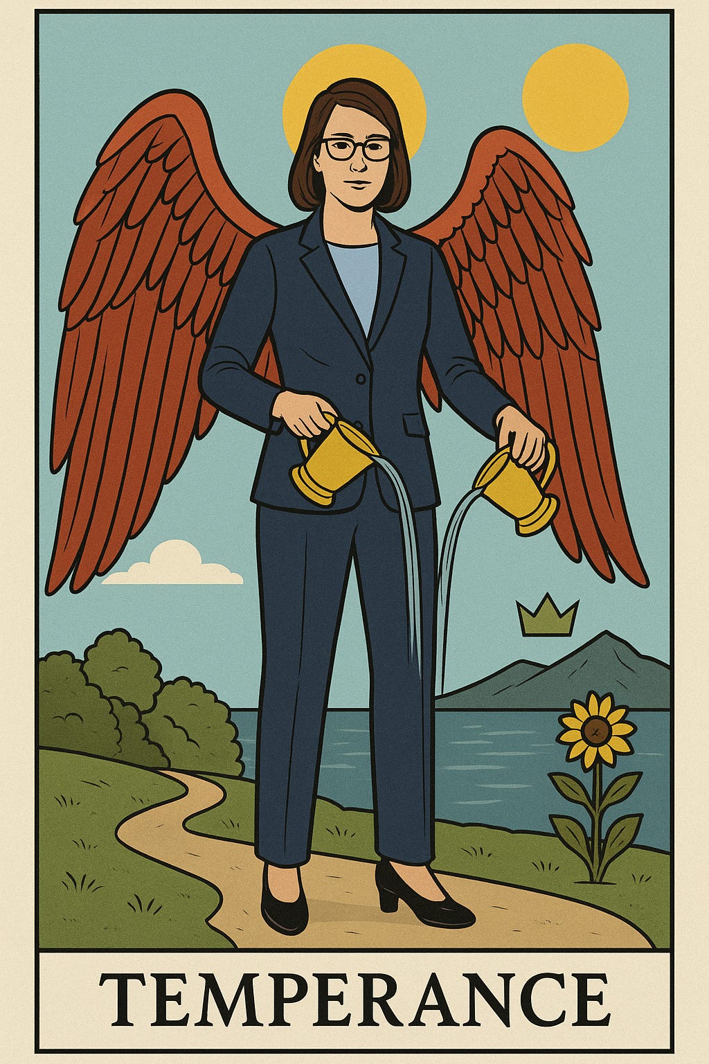 Picture an angel calmly pouring water between two cups.