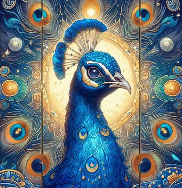 Up close, the sign was even more striking, and the high, arched windows were also embellished with huge porcelain peacocks surrounded by luscious flowers braided in thick bunches.
