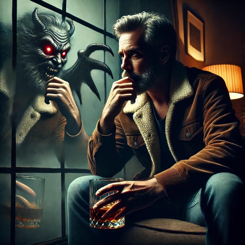 Looking at his reflection in the mirror he can almost see them waking up and stretching their clawed feet, getting ready to rip him to shreds.